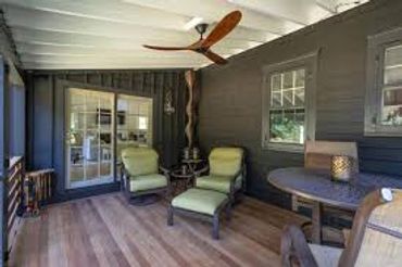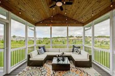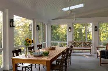 A porch enclosed with screening to keep out bugs while letting in fresh air. Perfect for enjoying the outdoors without mosquitoes or gnats.