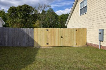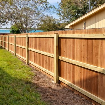 A classic and most common style in Eastern NC, stockade fences use tightly placed boards for a solid wall of privacy at an affordable price.